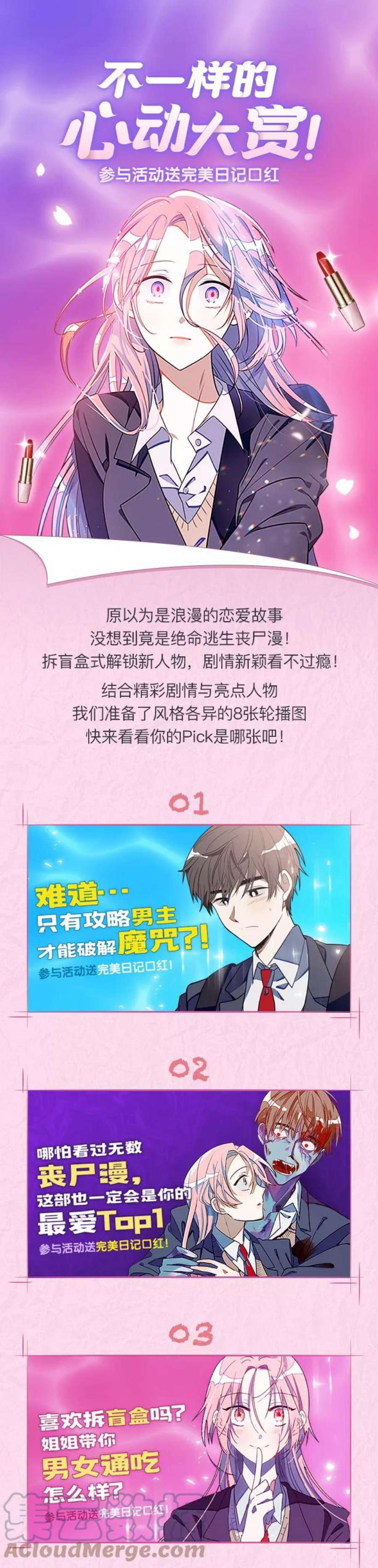 简介穿越成小说女主,甜蜜恋爱竟变成智斗丧尸?无意间发现的一本爱情小说改变了殷彩琳的生活。她穿越到小说里,成为了美艳绝伦的女主,过起了人人羡慕的幸福生活。但除了小说男主柳齐贺以外,她看到的其他人都只是黑影。就在她满心欢喜地期待男主向她告白时,男主却变为了丧尸?!彩琳也被一口咬死,当她再度醒来时,时间又回到了事发当天的早上...彩琳尝试了各种方法还是难逃无限的死亡循环。到底该如何在小说的世界里生存下去?!