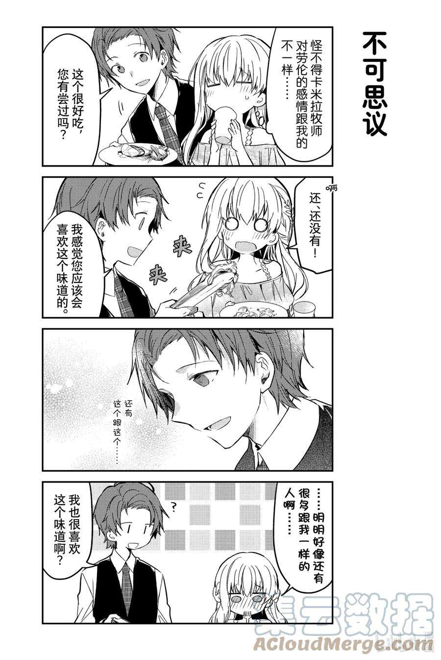 白圣女与黑牧师漫画 ,为了照顾一个人什么也不做、无所事事的圣女·塞西莉娅,性格一板一眼的牧师·劳伦斯不得不时刻忙碌着…… 完全相反的两个人彼此尊敬着对方,之间偶尔也会产生不错的气氛……? 投稿在pixiv上的,我行我素圣女×费力劳心牧师的同居纯爱喜剧!