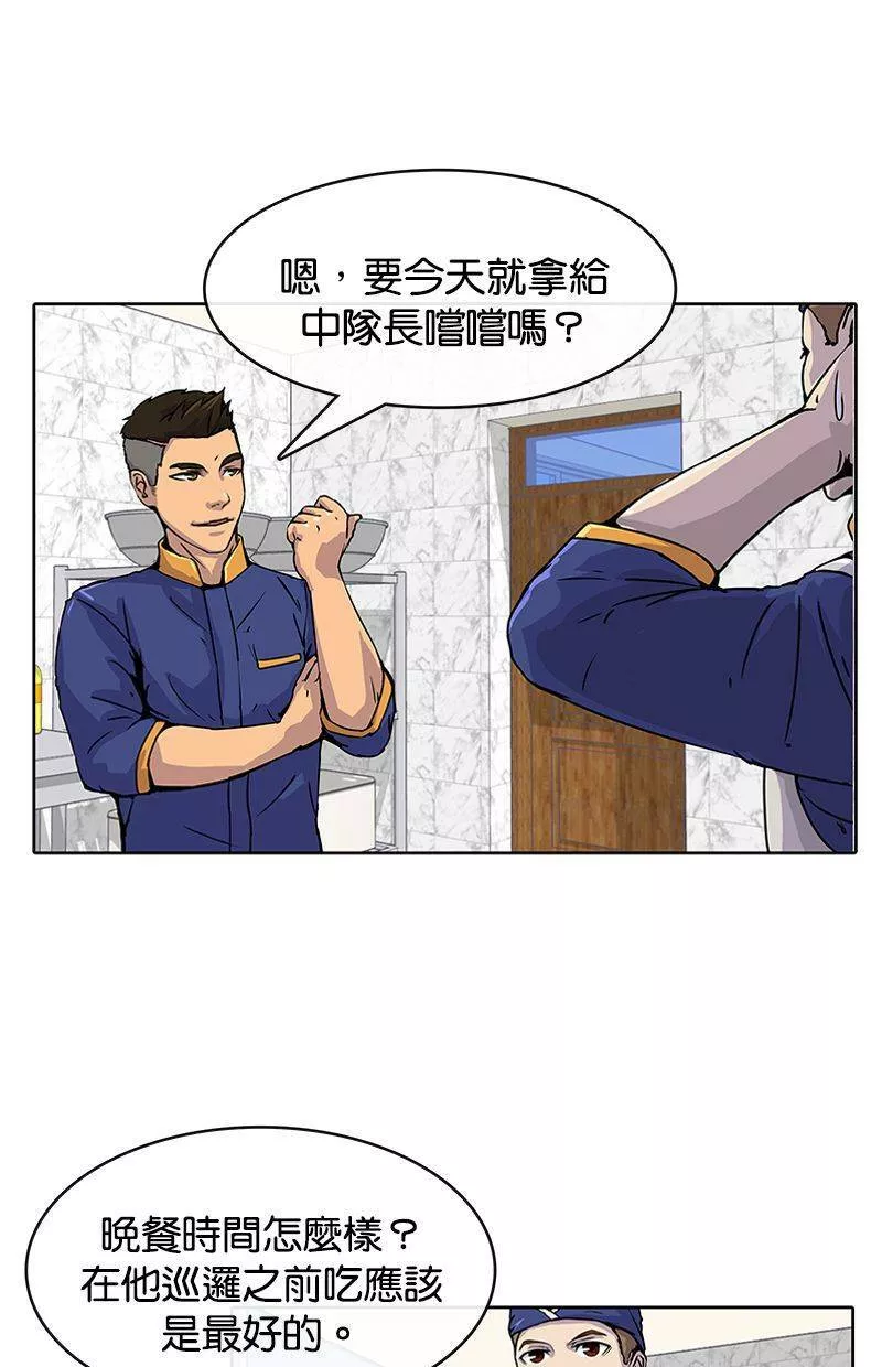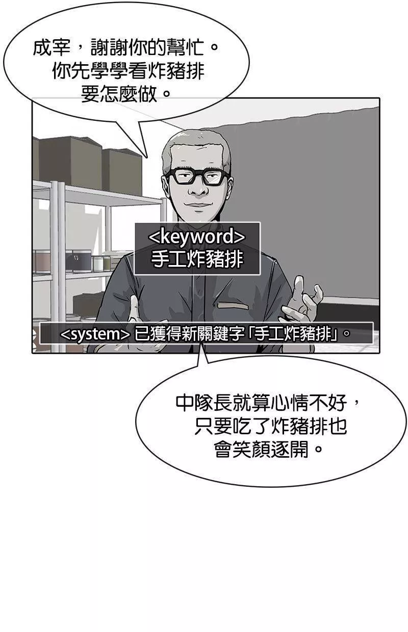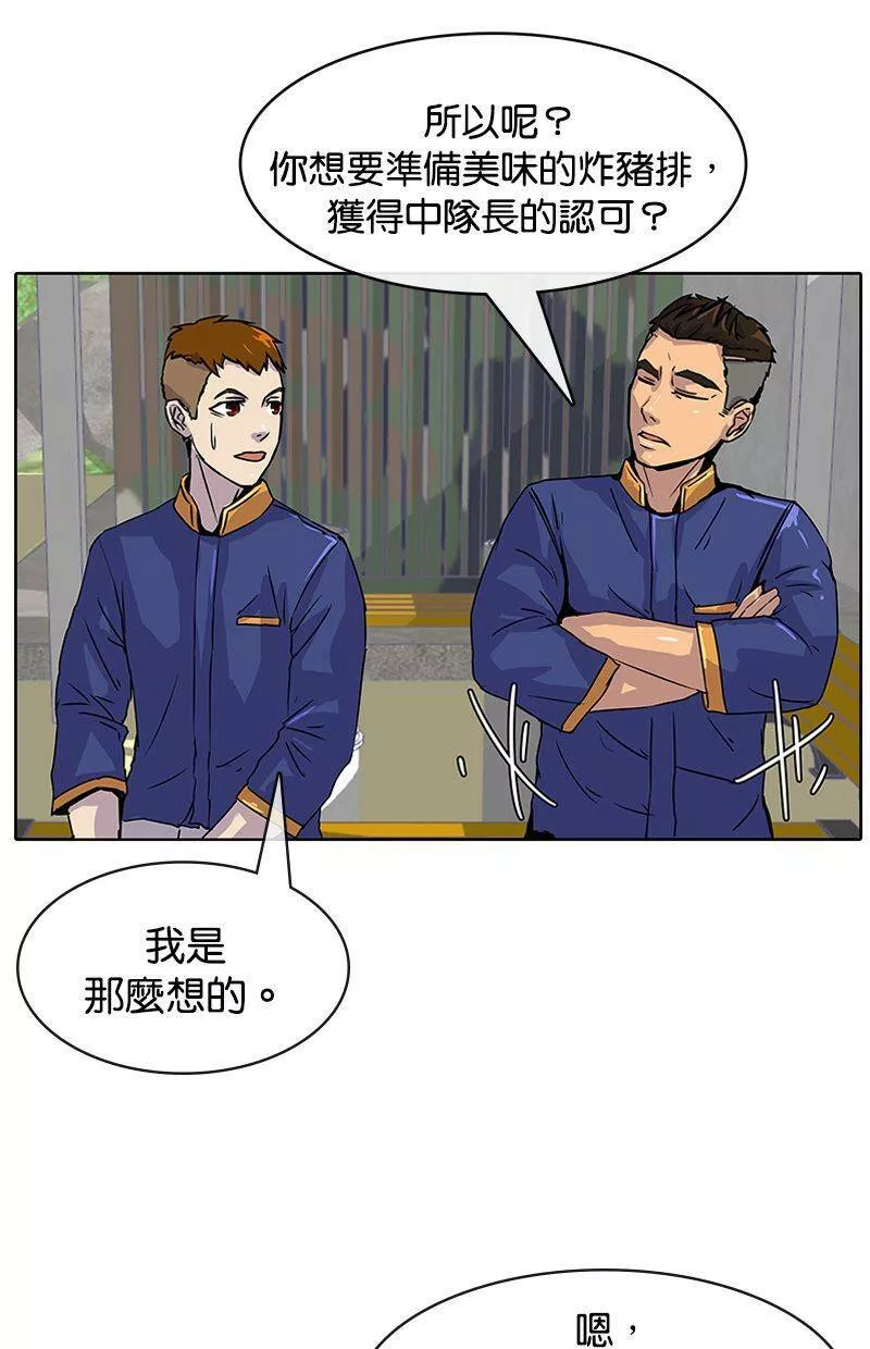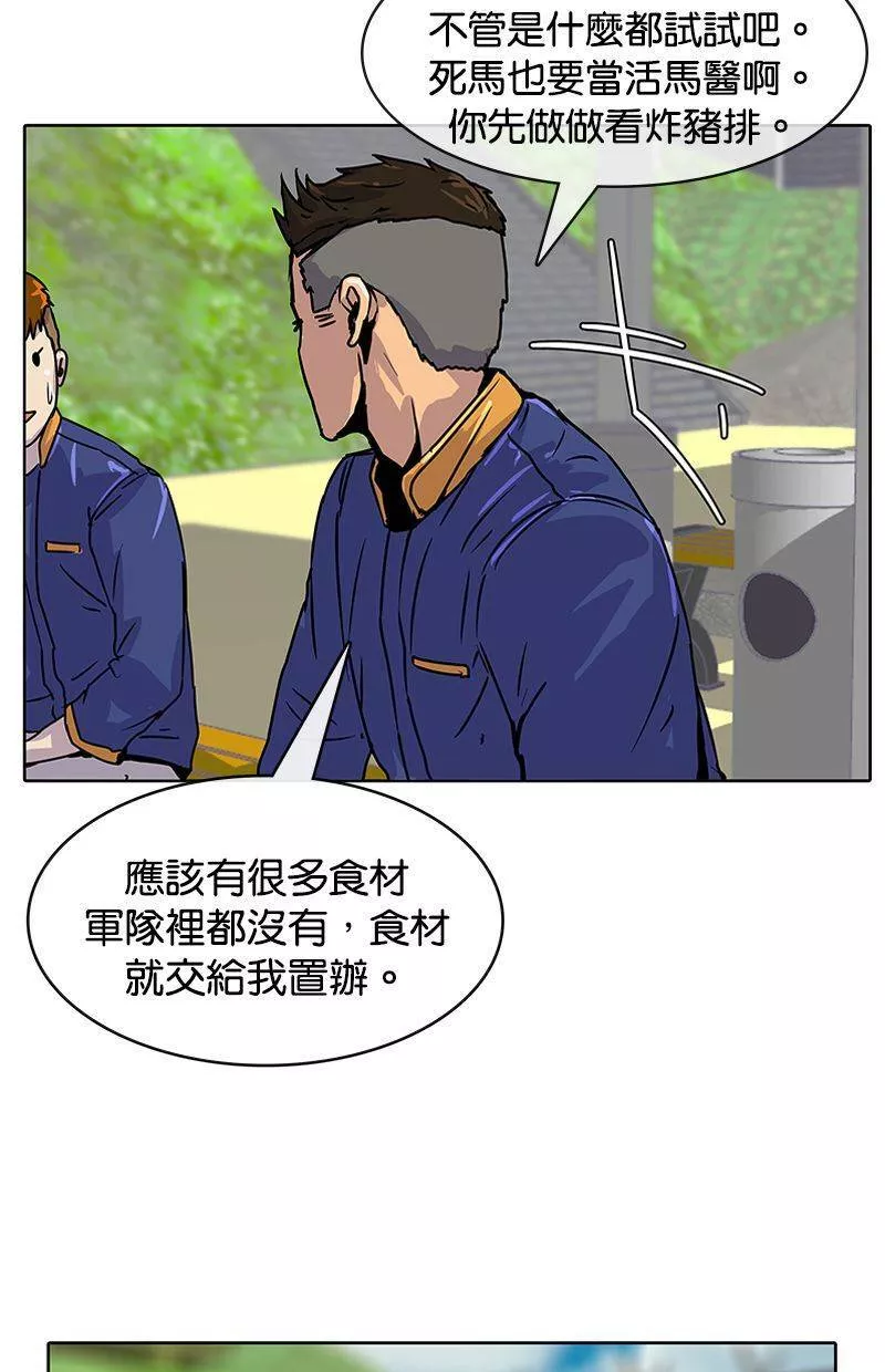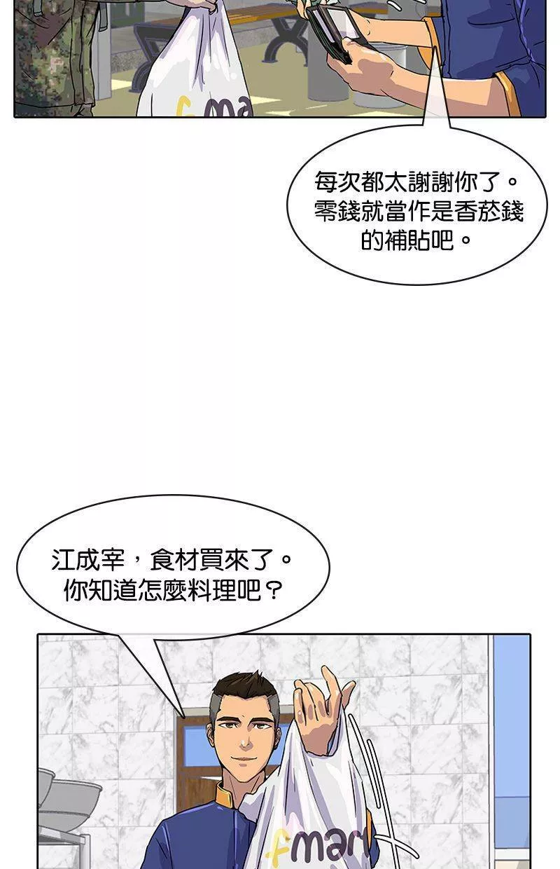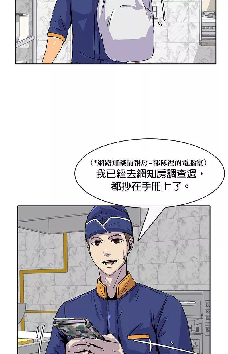 Kitchen Soldier又名菜鸟伙房兵,类型为奇幻的高人气漫画,漫画简介:21岁的江成宰是大韩民国典型的穷二代,辛苦维持生计之际收到了入伍通知。惴惴不安的新兵生活突然出现了一道曙光,只要跟着只有他才能看到的“游戏教学”破任务升级,就有机会成为军中的传奇厨师!