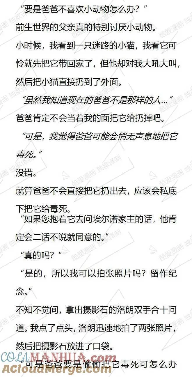 小说版被恶棍们抚养中又名,类型为日常|奇幻的高人气漫画,漫画简介:【小说内容从第28话开始,对应的漫画章节为第22话,1-27话的小说内容等后续补全。】本以为我只是个私生女..没想到还要和家人分道扬镳成为陌生人?附身在配角身上1年后,我幡然醒悟,我马上就要被赶出家门...