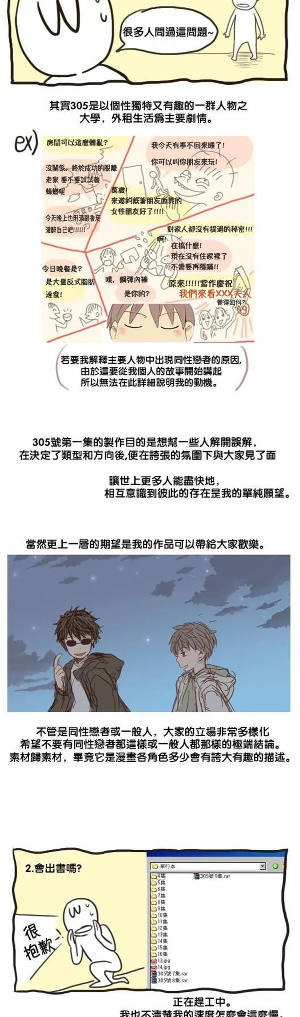 欢迎来到305号又名欢迎来到305号,类型为滑稽搞笑|日常的高人气漫画,漫画简介:从小到大一直过著平凡生活的韩国青年金正贤,和他的舍友金浩模。这是个无论怎样都不搭的两个人。这里记录了他们荒唐又敏感的故事。