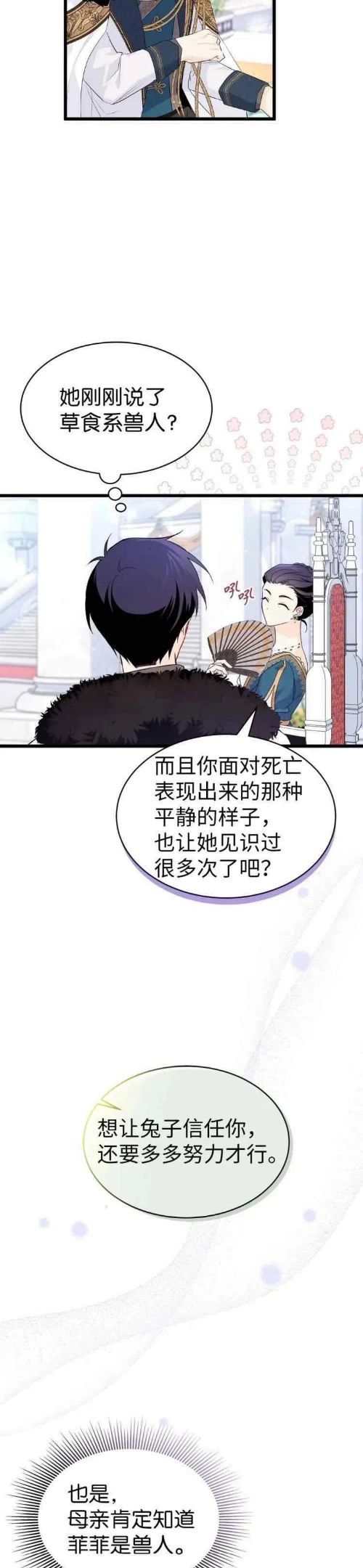 我的名字是薇薇·莱维安,来自有名望的莱维安家族。这个世界,,到目前为止,只有我18岁还没现人形人类。也许是因为害怕家族蒙羞,父母派人将我丢到了黑豹的领土上。然后,命运一般,我遇到了拥有红眼睛的黑豹,他的眼睛发着光。害怕被抓住吗?那你再哭大声点.——因为你的腿短,胖兔.——你是我捡来的.所以属于我。黑豹还不够,还有狮子、狼等等。在猛兽丛生的这个地方,身为兔子的我,能活得好吗?弱小的(?)小兔子薇薇的大冒险-现在开始!!