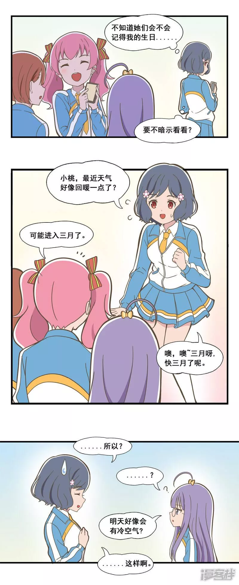 呼唤少女又名,类型为校园|搞笑|生活的高人气漫画,漫画简介:讲述了就读于当地高中,性格迥异的三位女生——懦弱胆怯的叶曦,个性强势的孙芝雅,傲娇淘气的白小桃之间,轻松悠闲的日常校园生活。
