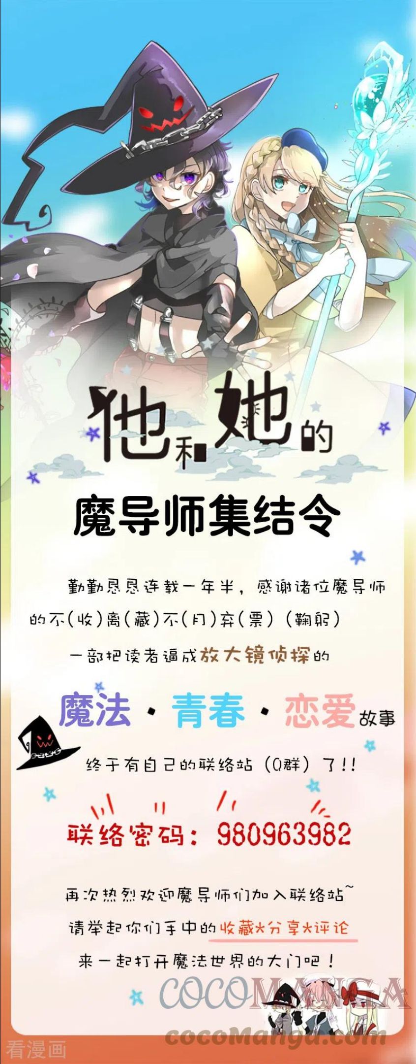 【每周五、七更新】传说很久以前,有一位非常邪恶的魔导师。他面容英俊,性格却冷酷残暴,所到之处血流成河掀起一阵血雨腥风。后来,一位如天使般的善之大魔导师出现。她击败了恶之大魔导师,成为了拯救世界的英雄……百年以后,命运的齿轮再次转动。恶之大魔导师的转世——塔菲与善之大魔导师的转世——菲奥在魔法学院再次相遇,这次不是作为敌人,而是命运与共的搭档!不过看似风平浪静的校园里却暗藏危机,塔菲与菲奥在联手应对各种突发情况的过程中,逐渐加深了对彼此的了解,两人的关系也悄然转变……